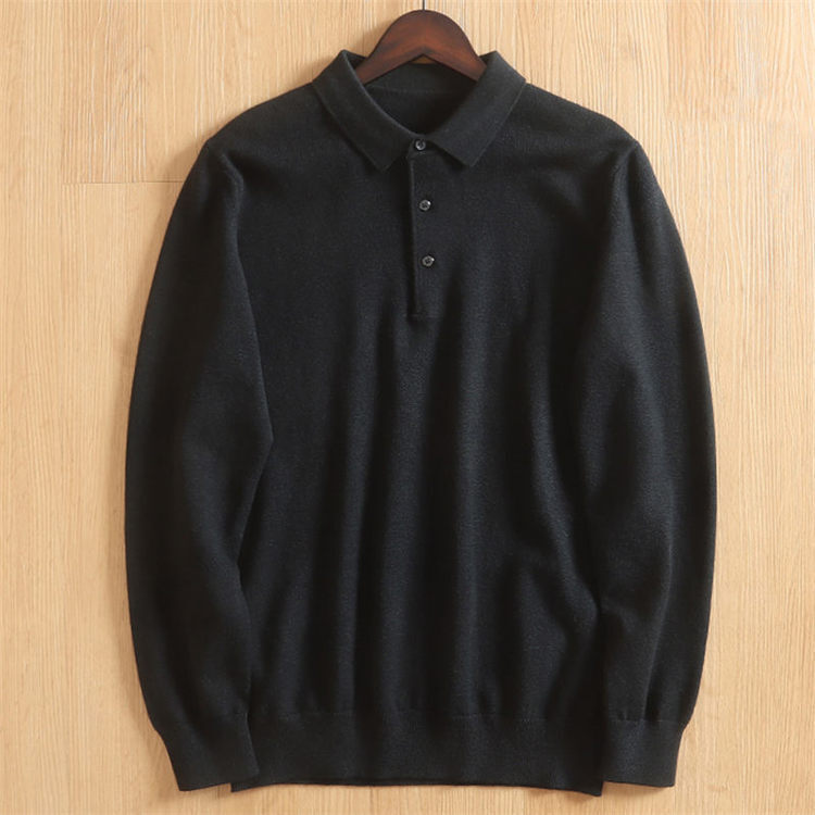 > Y6451-L ブラック 新品 セーター ニット ウール混 ポロカラー ふんわり スリム 暖かさ 秋冬 厚手 極上の着心地 ビジネス メンズ トップス