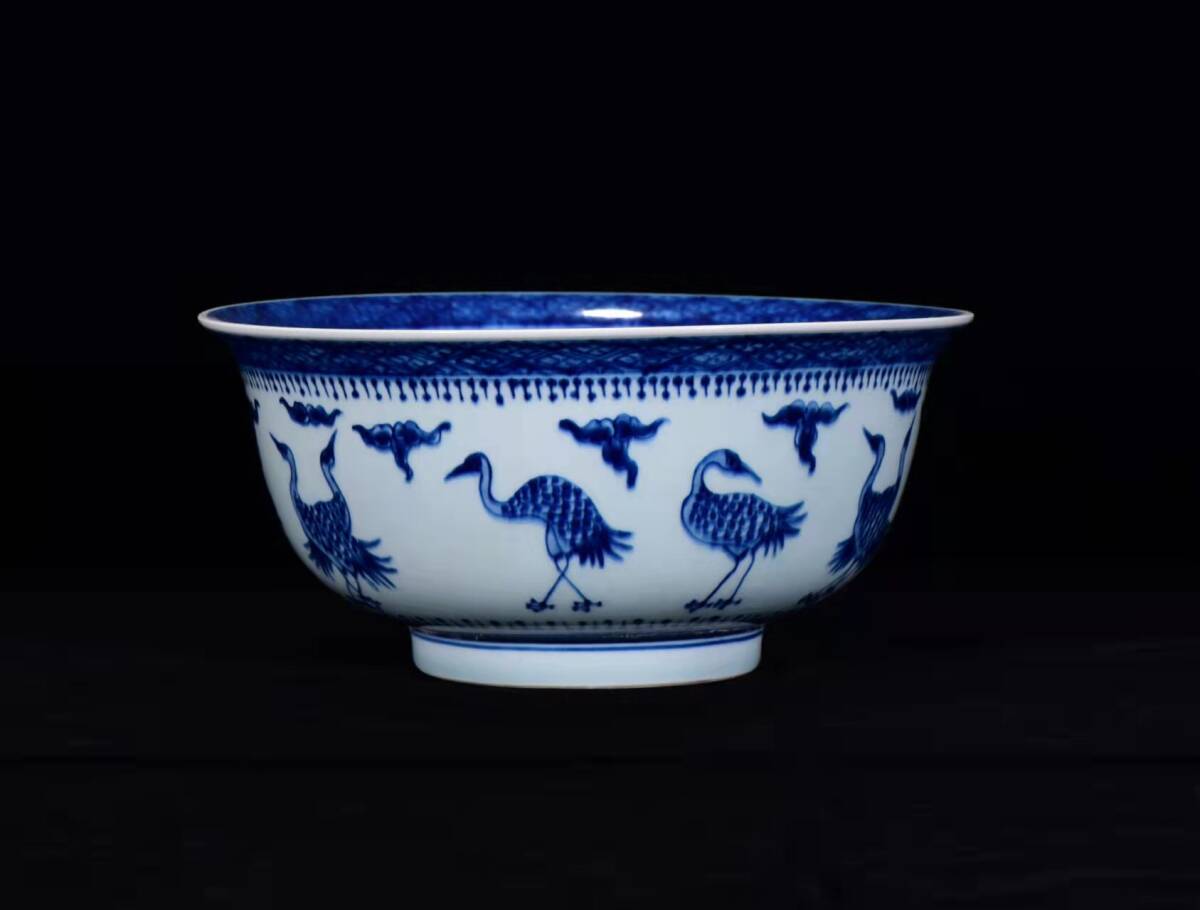 > 【超珍館蔵】清 康熙年製款 古陶瓷品 青花 仙鶴紋 供碗 陶藝 古賞物 古董品 古美術品 時代物 旧家蔵出 稀少珍蔵品
