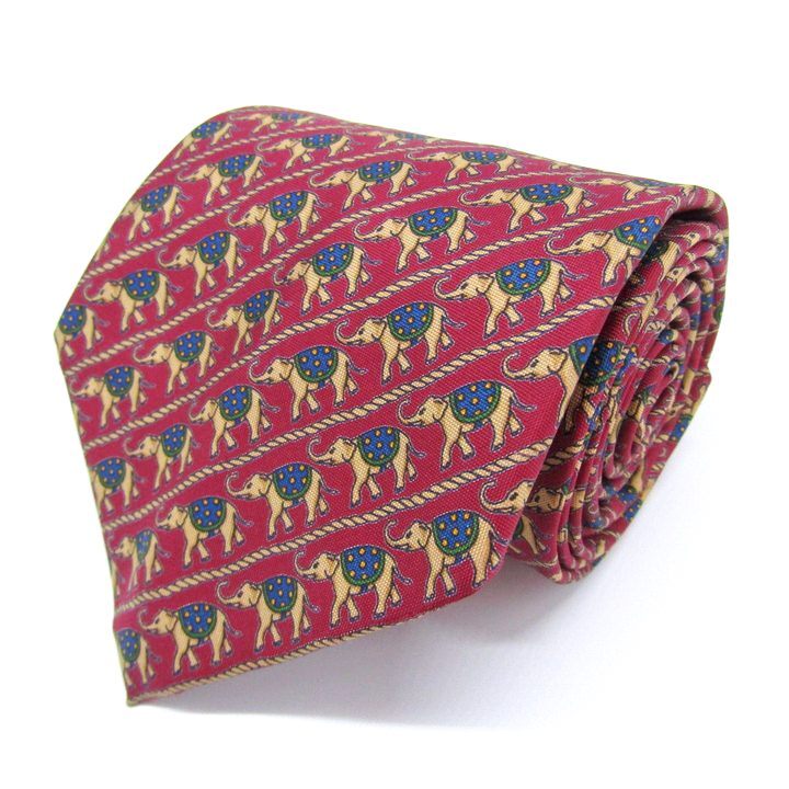 - ジムトンプソン ブランド ネクタイ シルク 動物柄 ストライプ柄 象 PO メンズ レッド JIM THOMPSON