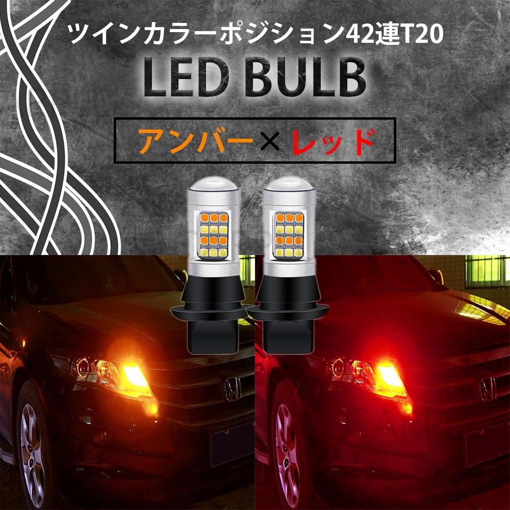 > アンバー & レッド T20 LED ハイフラ防止抵抗付き 汎用 ウインカーポジションキット 爆光 2色 42SMD ピンチ部違い ツインカラー 新品