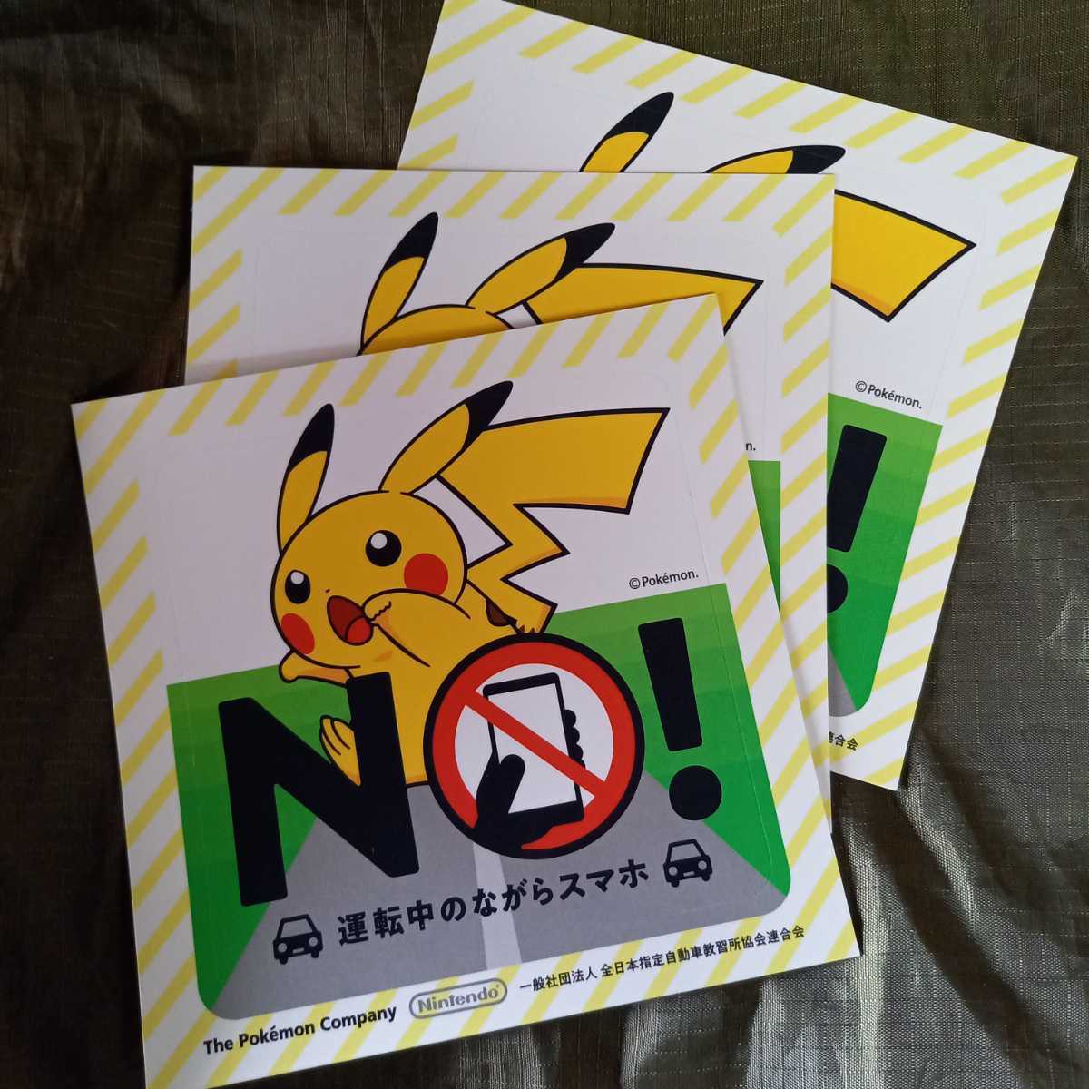 - ピカチュウ ステッカー 非売品 未使用 ポケモン公式 PokemonGO 運転中のながらスマホNO 三枚 まとめ