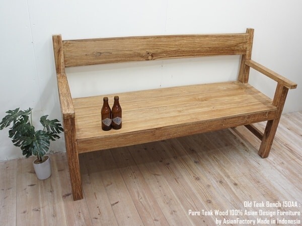 - オールドチーク無垢材 ベンチ150cm 3人掛け アジアン家具 椅子 木製いす ソファ 天然木 ナチュラル モダンアジアン バリ家具 送料無料