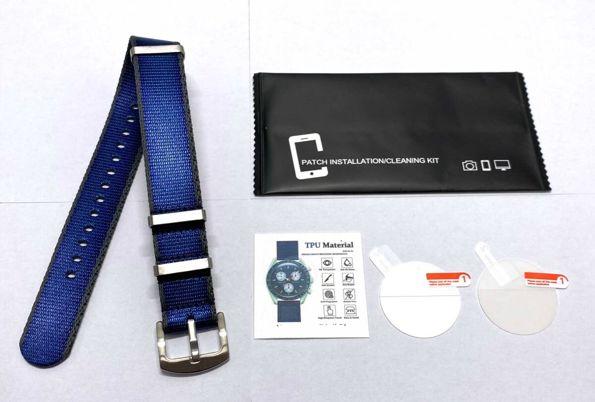 - 【未使用・修理部品】OMEGA X Swatch オメガ スウォッチ 対応 保護フィルム ナトーベルト セット おまけ-フィルム+1枚/バネ棒2本 / BY-1126