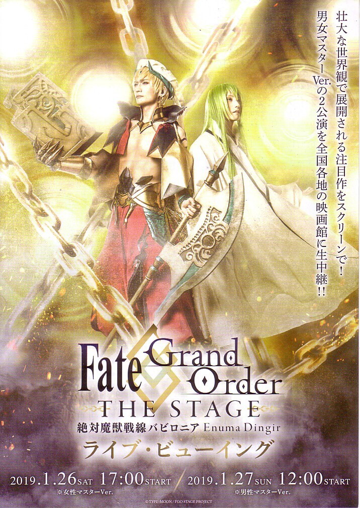 - 「Fate Grand Order THE STAGE 絶対魔獣戦線バニロニア ライフ・ビューイング」の映画チラシです