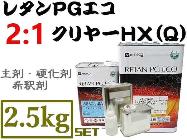 - 関西ペイント【レタンPGエコクリヤーHX(Q) 2.5kgセット】■高仕上がり2:1タイプ★他社塗料への上塗りOK!2液ウレタン クリアー 鈑金塗装