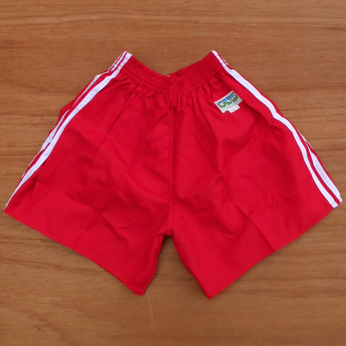 - 未使用 80s オウビ OWB ショートパンツ L レッド 3ライン 赤x白 ランニング 当時物 デッドストック 短パン 昭和 ランパン 体操服 体育 学校
