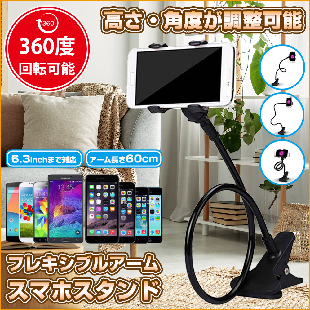 - スマホ ホルダー アームスタンド フレキシブル アーム 固定 クリップ 360度