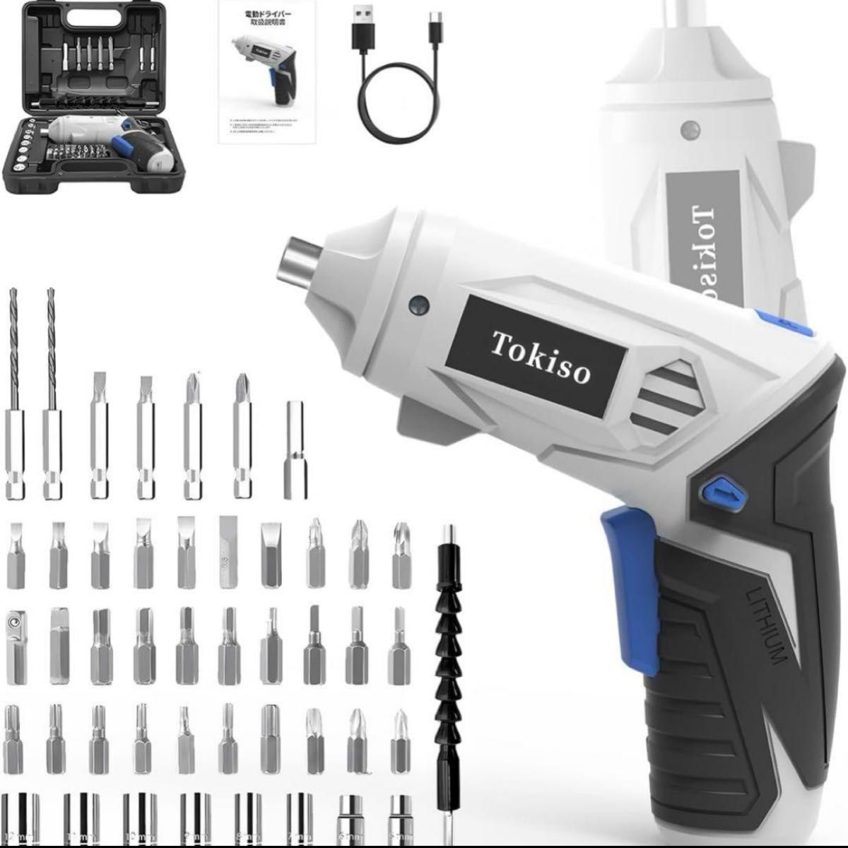 - 電動ドライバー コードレス 正逆転切り替え 4.5V 44本ビット付きセット