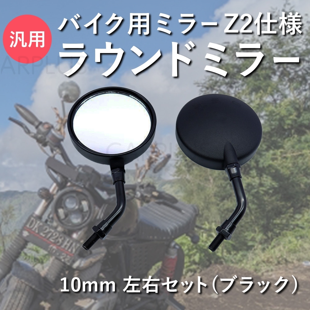 > バイク ラウンドミラー ミラー 汎用 左右セット チョッパー ボバー 10MM 正ネジ 丸型 Z2仕様 ハーレー ゼファー400 車検対応 新品