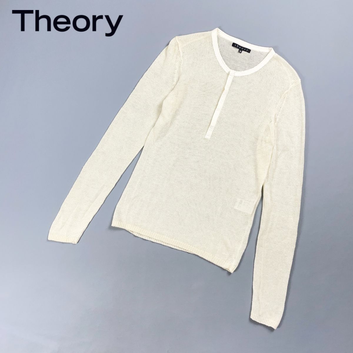 - 美品 theory セオリー リネン100% ヘンリーネックメッシュニット サマーセーター トップス レディース オフホワイト サイズ36*GD1080