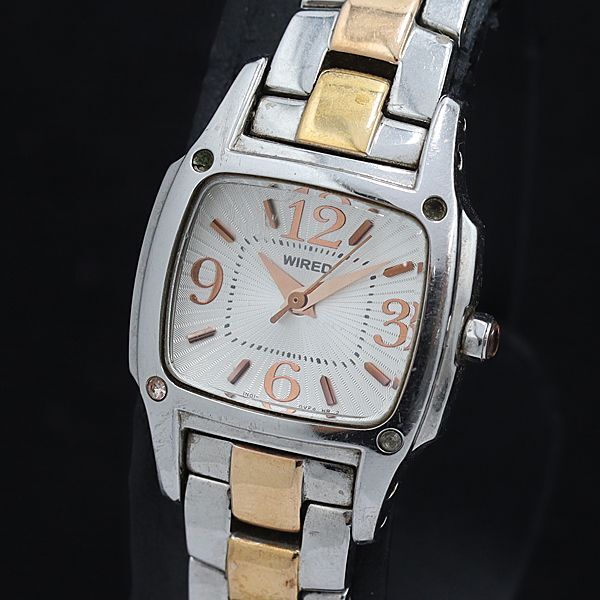 > 稼動 セイコー QZ ワイアード 1ND1-0KP0 ホワイト文字盤 シルバー×ゴールド レディース腕時計 2000000 NSK OMI