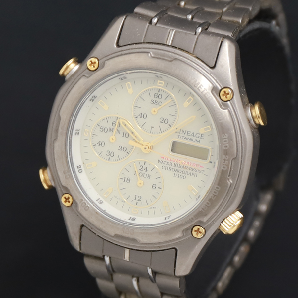 - QZ カシオ LINEAGE LIS-001 デジアナ アイボリー文字盤 クロノ レディース腕時計 2000000 NSK KRK