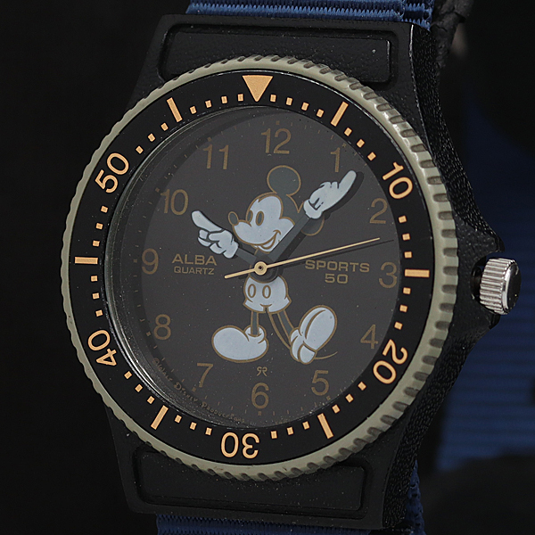 > セイコーアルバ スポーツ50 ミッキーマウス Y481-017A QZ 回転ベゼル 黒文字盤 メンズ腕時計 AOY 2000000 NSK
