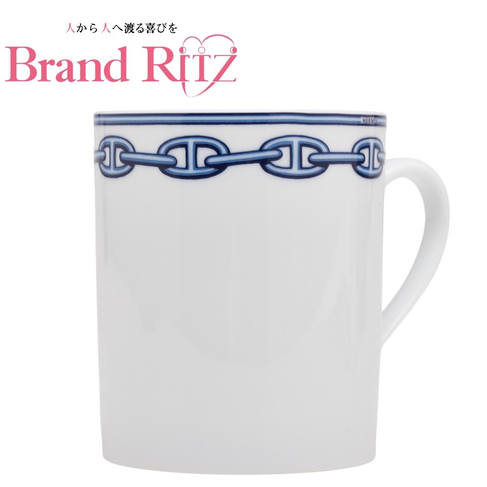 - 中古 エルメス シェーヌダンクル マグカップ 陶器 Aランク ホワイト ブルー レディース HERMES【送料無料】【三田店】