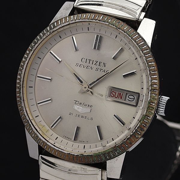 > シチズン AT/自動巻 3015a-Y セブンスター デラックス 21石 シルバー文字盤 デイデイト ラウンド メンズ腕時計 IKE