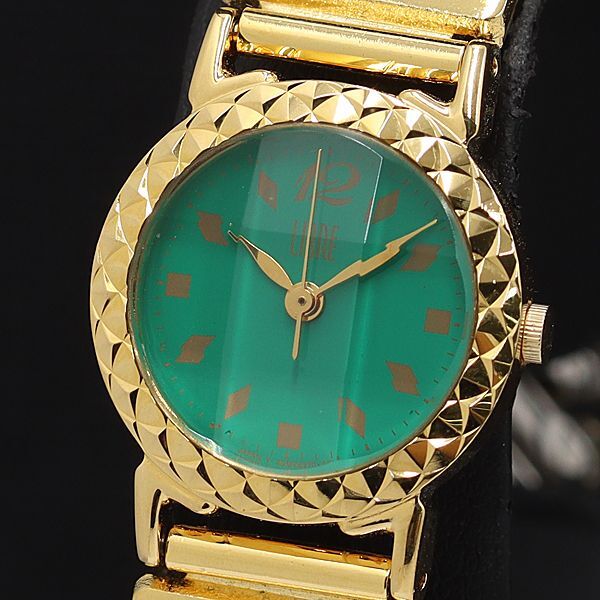 - 稼働 良品 リブレ グリーン文字盤 カットガラス QZ レディース腕時計 NSY