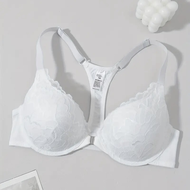 - 【新品】B90 フロントホック ワイヤー入りシームレスブラ★220f.ホワイト白★Yバック レース モールドカップブラジャー