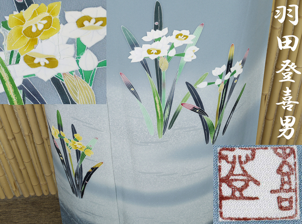 - 【京かんざし】t-231★人間国宝【羽田登喜男】特撰訪問着 水仙 躾糸付未着用身丈163.5 cm裄丈65 cm★即決送料無料!