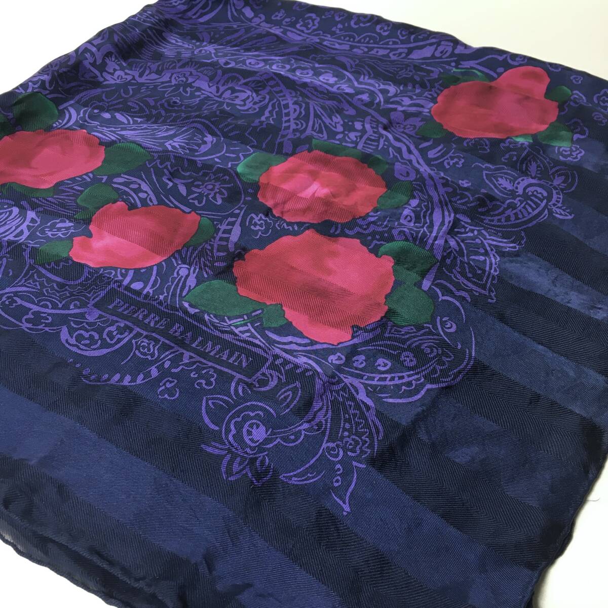 > 78B169|美品|ピエール・バルマン スカーフ ネイビー 花柄 ストライプ
