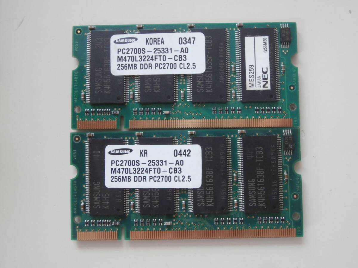 - DDR 333 PC2700 200Pin 256MB×2枚セット SAMSUNGチップ ノート用メモリ