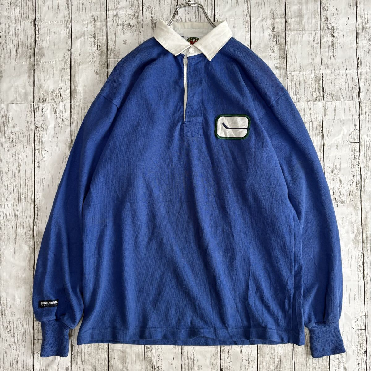 - 90s カナダ製 BARBALIAN バーバリアン NHL 刺繍&ワッペン 長袖 ラガーシャツ Lサイズ