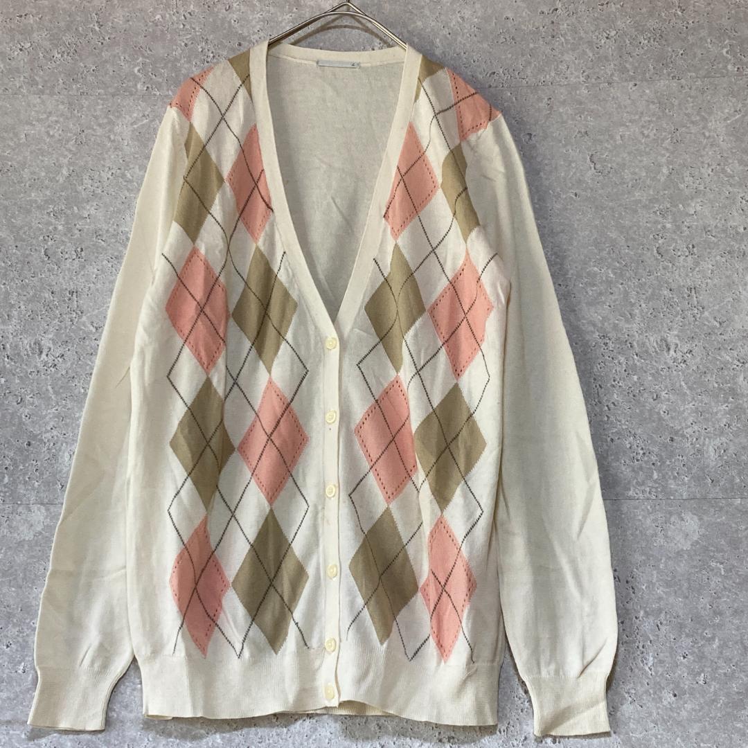 - 【UNIQLO】ユニクロ(L)アーガイルカーディガン*長袖*伸縮性*Vネック*白
