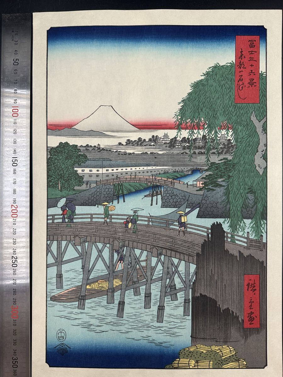 - 【真作】大正期 浮世絵木版画 歌川広重「冨士三十六景 東都一石ばし」名所絵 大判 錦絵 保存良い