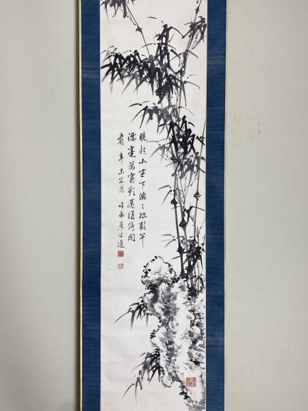 > 《魚亀》【模写】市川塔南「墨竹図 画賛」紙本 共箱 森槐南 桜木春山 矢土錦山師事 日本画 茶掛 茶道具 古美術 掛軸 掛け軸 人が書いたも