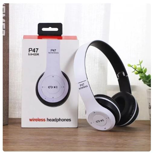 - P47 ホワイト ワイヤレスヘッドフォン ヘッドホン ノイズキャンセリングヘッドホンBluetooth 5.0 HiFi Hi-Fiステレオヘッドフォン