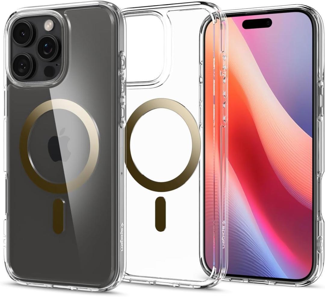 - Spigen iPhone 16 Pro ケース MagSafe対応 クリア 透明 ストラップホール 米軍MIL規格 ウルトラ・ハイブリッド・マグフィット (ゴールド)