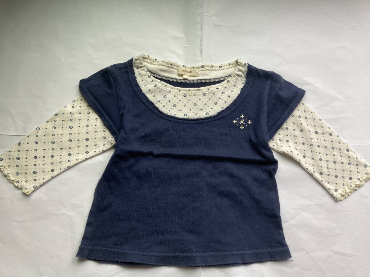 > ワールド HusHusH ハッシュアッシュ 110cm 長袖 重ね着風 白 ネイビー 女の子 子供服 秋物 冬物 8分袖 中古