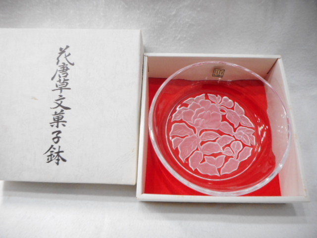 - ◇昭和レトロ◇HOYA クリスタル 花唐草文菓子鉢 プレート 保管品 インテリア 箱入り