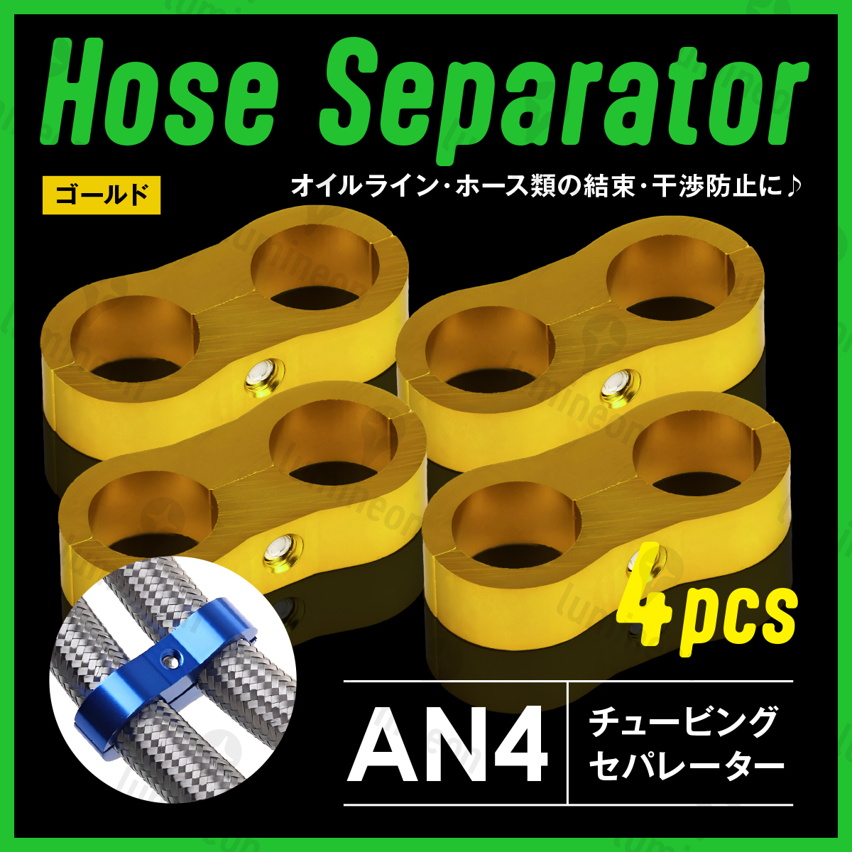 > ホース セパレーター チュービング クランプ 4個 セット フィッティング アダプター バイク 二輪 車用 AN4 配線 固定 ゴールド 金 g231d1 1