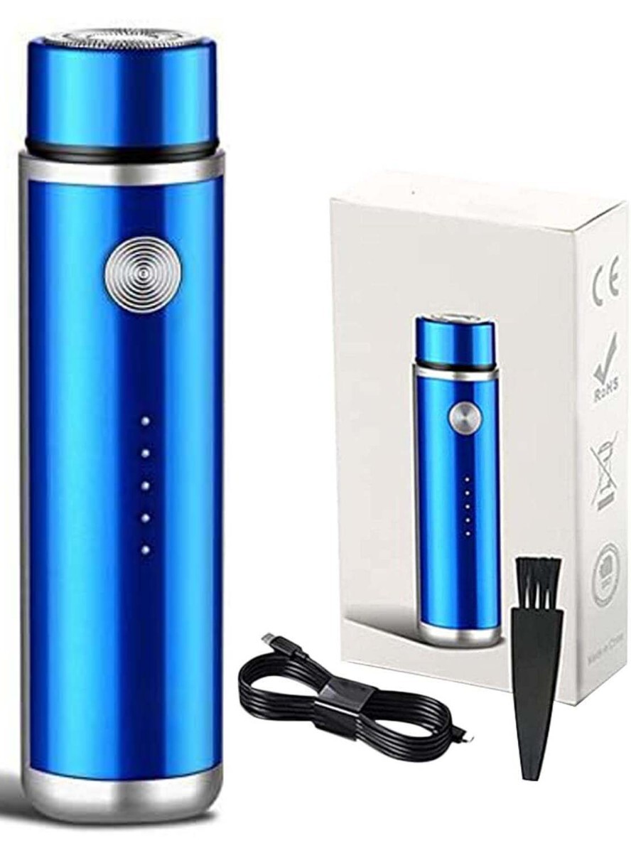 - 電気ミニシェーバー髭剃り 回転式シェーバー 電動髭剃り 電動シェーバー 男性用 IPX5防水 水洗い可 USB充電式(色:ブルー)