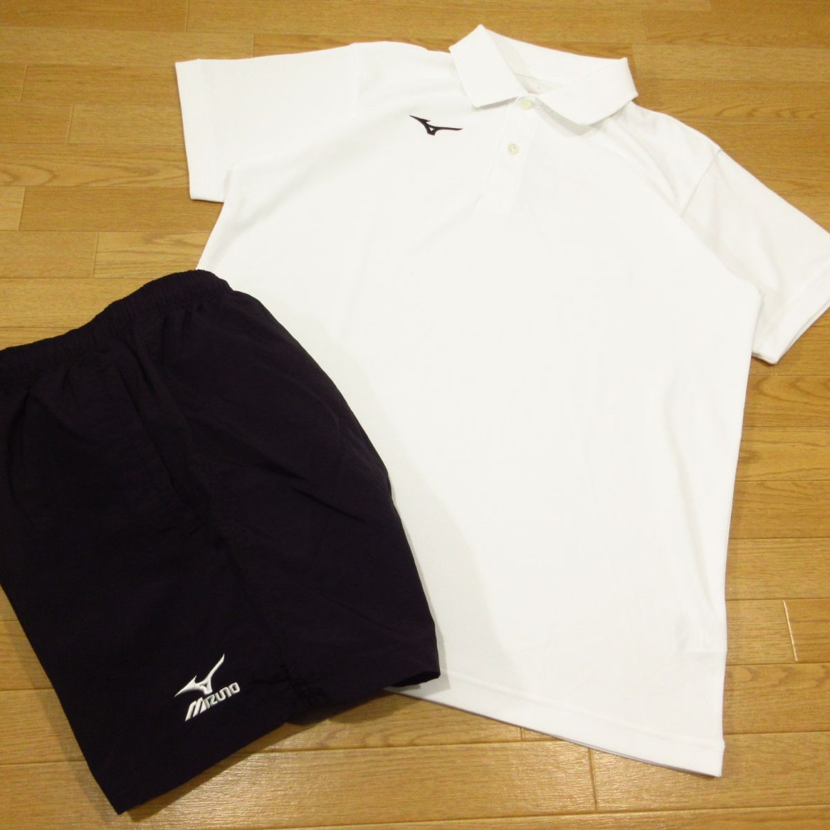 > ◎極美品!MIZUNO ミズノ テニス M 上下セット / ジャージ 半袖 ポロシャツ & ハーフパンツ ショートパンツ 速乾 メンズ 白x黒◆BA3473