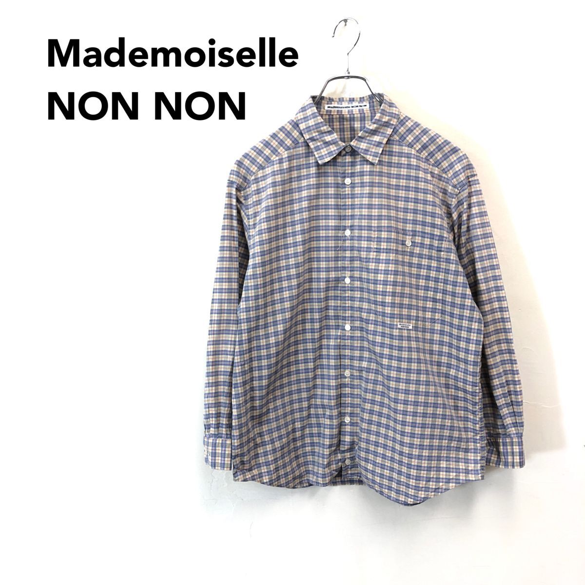 > 2K1878-Y◆Mademoiselle NONNON マドモアゼルノンノン 長袖シャツ チェック柄 胸ポケット ラウンドヘム レディース ◆ブルー クリーム系