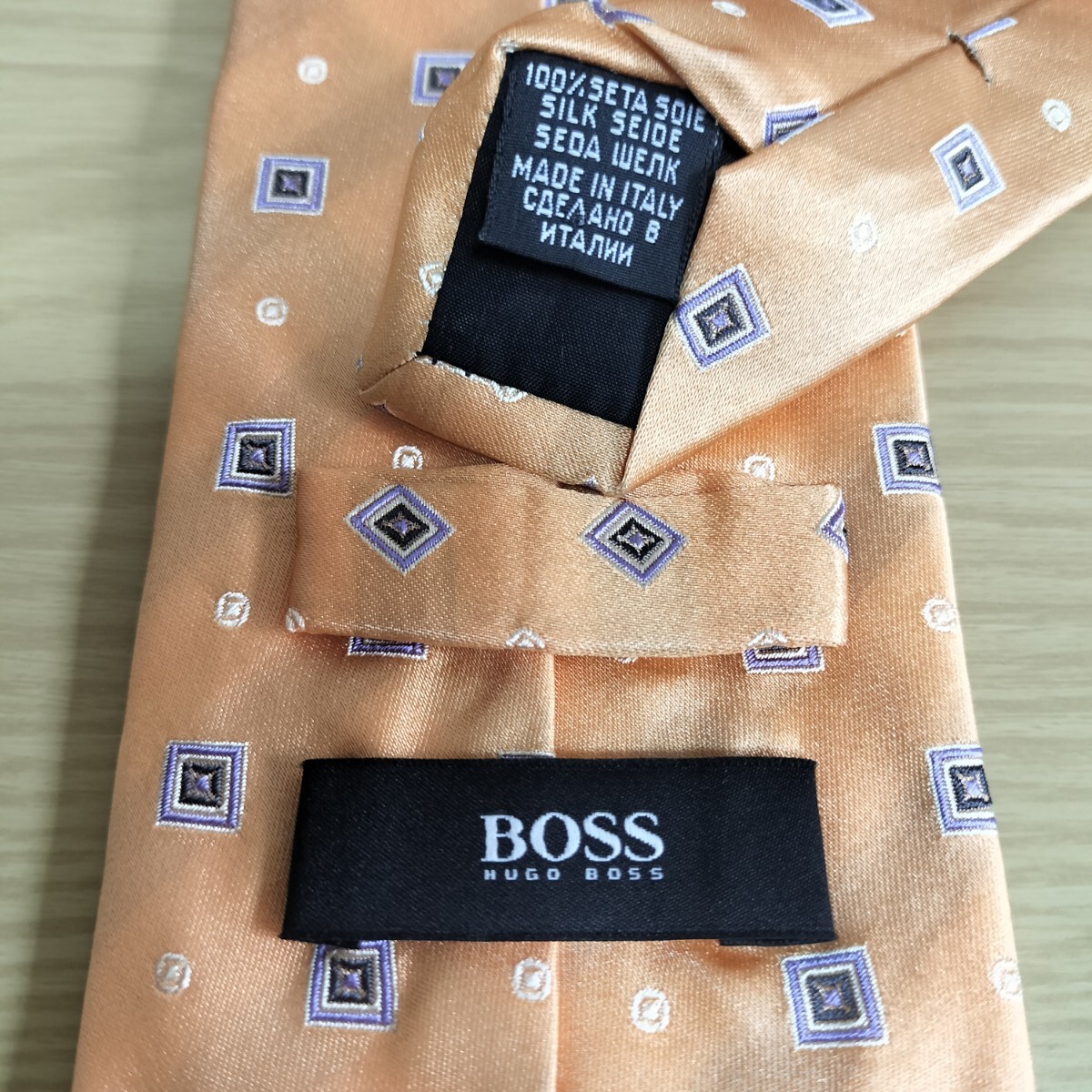 - HUGO BOSS (ヒューゴボス)オレンジ四角点々ドット模様ネクタイ