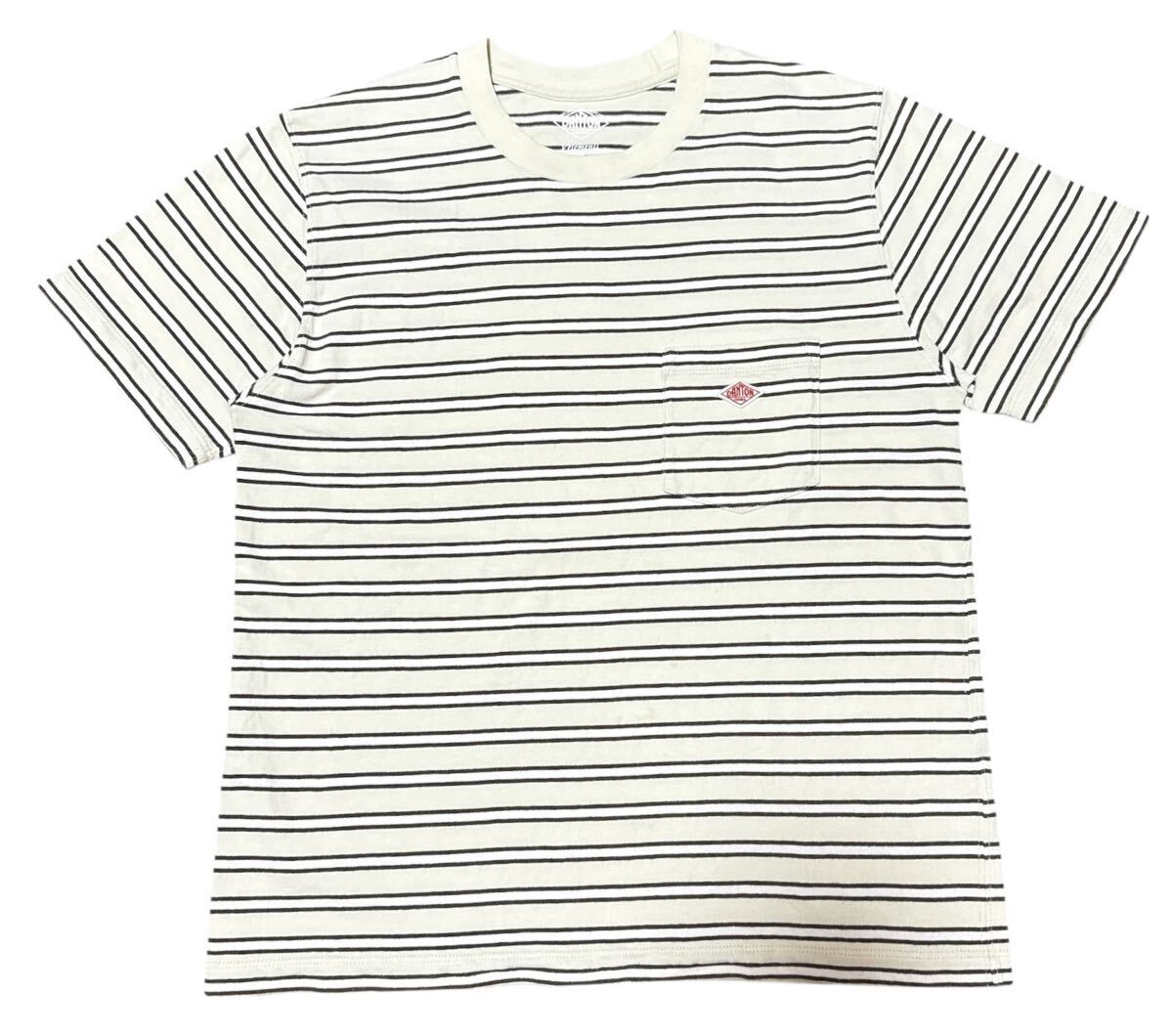 > 送料無料 ○ DANTON ダントン ○ ロゴワッペン ボーダー柄 半袖 Tシャツ ベージュ×ブラウン系 34