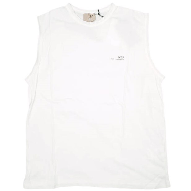 > 新品 N°21 ヌメロヴェントゥーノ 22SS ロゴプリント ノースリーブTシャツ 22SW-F101-4203 40 WHITE カットソー 定価25,300円 トップス