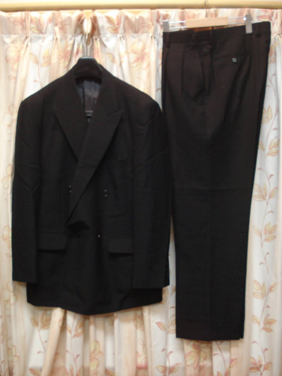 > 送料無料!美品!秋冬もの!BB5サイズ!ウェスト85cm~102cmアジャスター調節可能!黒色!ブラックフォーマルダブルスーツ!毛:100%!