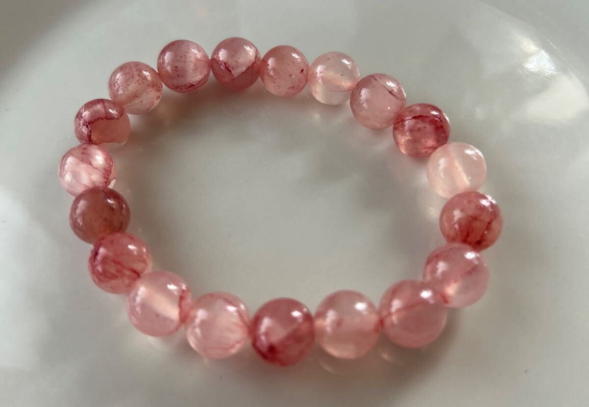 - おすすめ!!天然石★苺ミルク カルセドニー ブレスレット★10mm後半 17cm