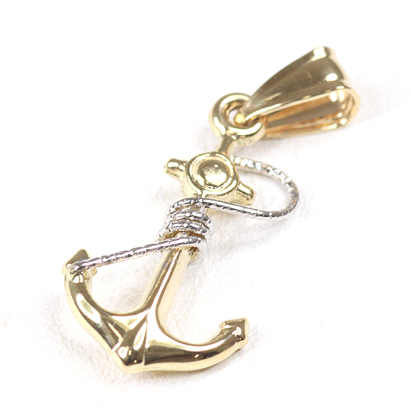 > K18YG×K18WG イカリモチーフ ペンダントトップ 0.9g アンカー 錨 750YG×WG マリン NJ 未使用品