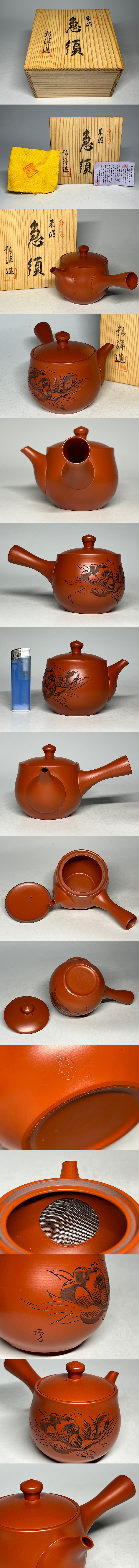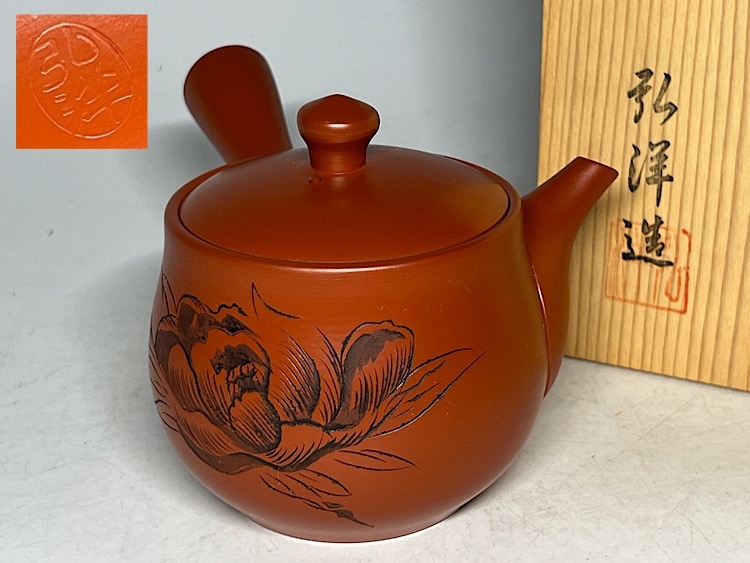 - 【瑞】弘洋作 常滑焼 朱泥 急須 共箱 共布 栞 未使用