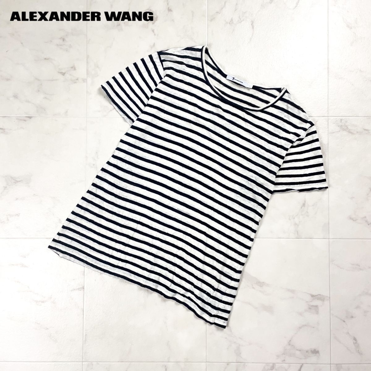 > T by ALEXANDER WANG ティーバイアレキサンダーワン ボーダーガーゼTシャツ 半袖 レディース 白 ホワイト 黒 ブラック サイズXS*HD294
