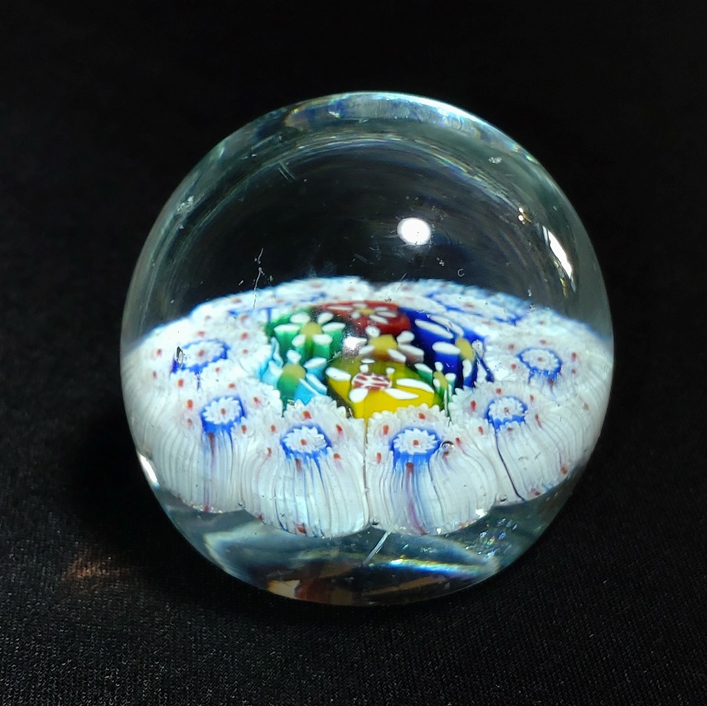 - ペーパーウェイト ミルフィオリ 花 文鎮 オブジェ 置物 直径約4.9cm 重量約145g 【5297】