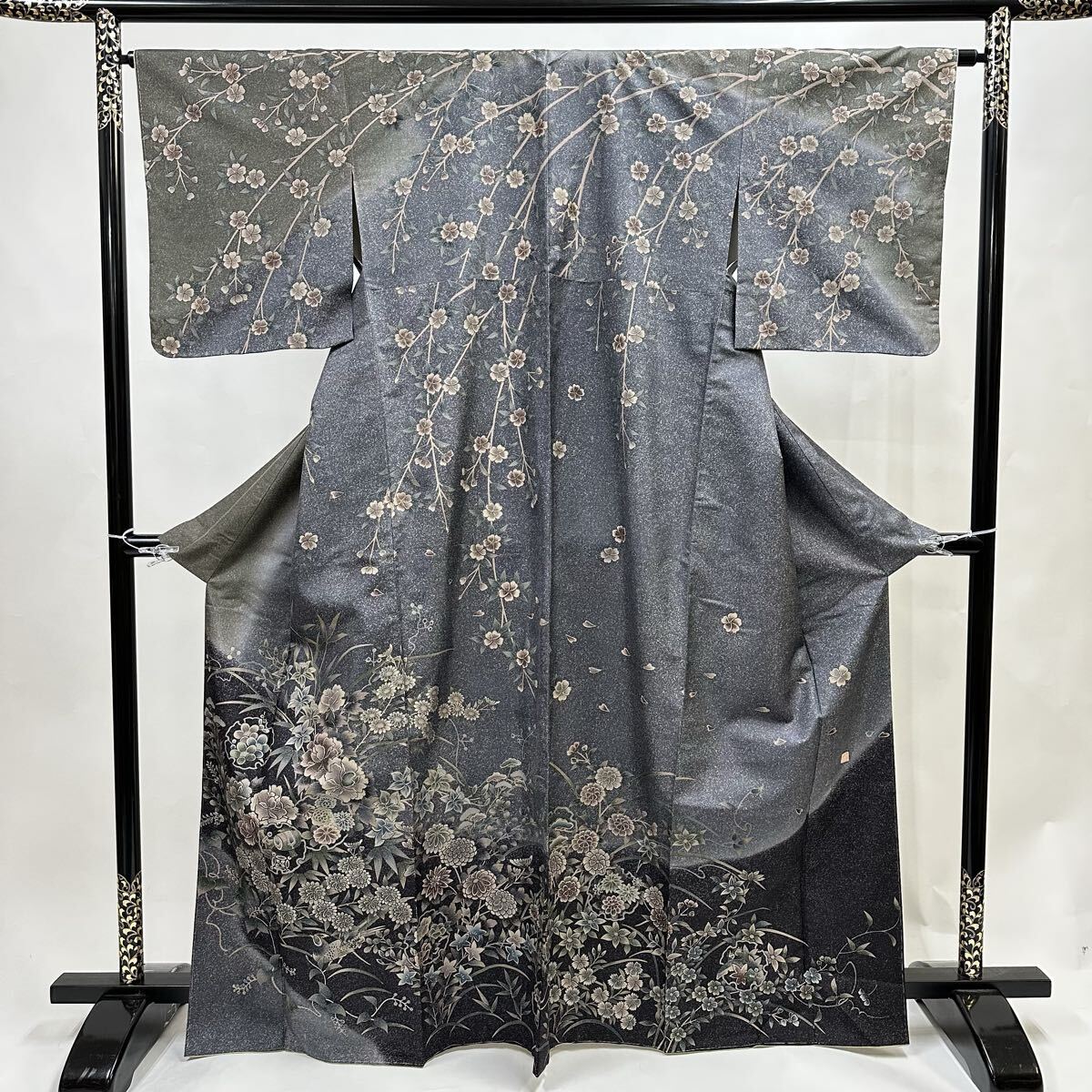 > 【七福】c858 大島紬 訪問着 正絹 落款あり 袷仕立て 着物 逸品 身丈 約164cm 裄 約64cm
