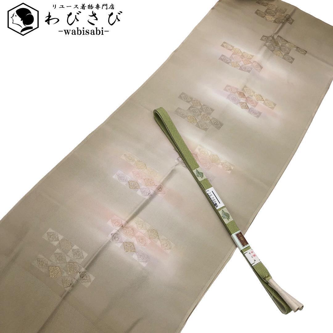 黄鼠色のお色味に菱形模様がデザインされた帯揚げ、高麗組の素敵なお品でございます。