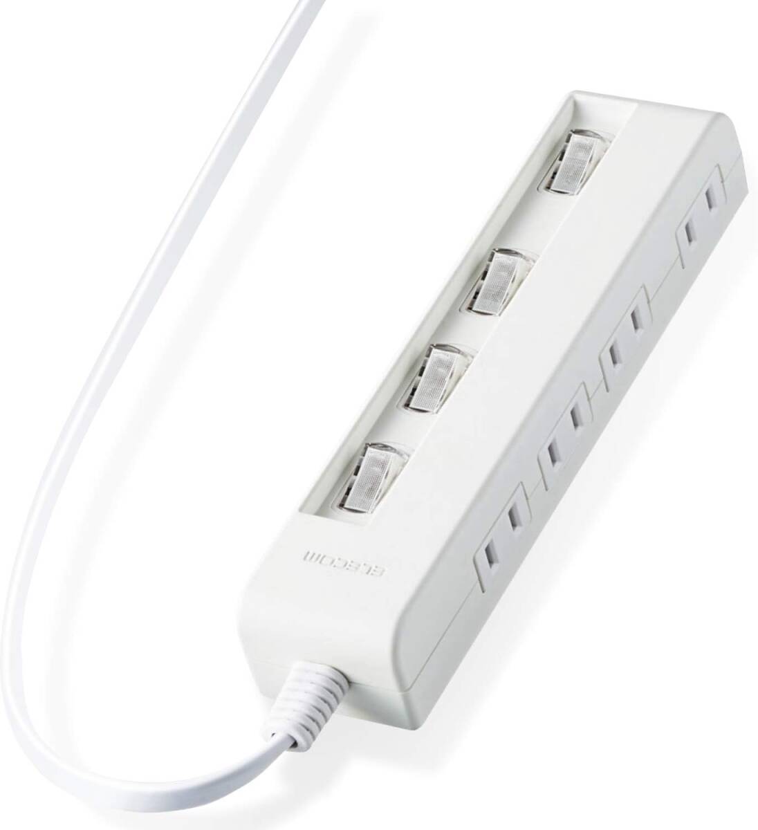 - エレコム 電源タップ コンセント 個別スイッチ 省エネ スイングプラグ 横挿し 4個口 1m ホワイト T-E5C-2410WH