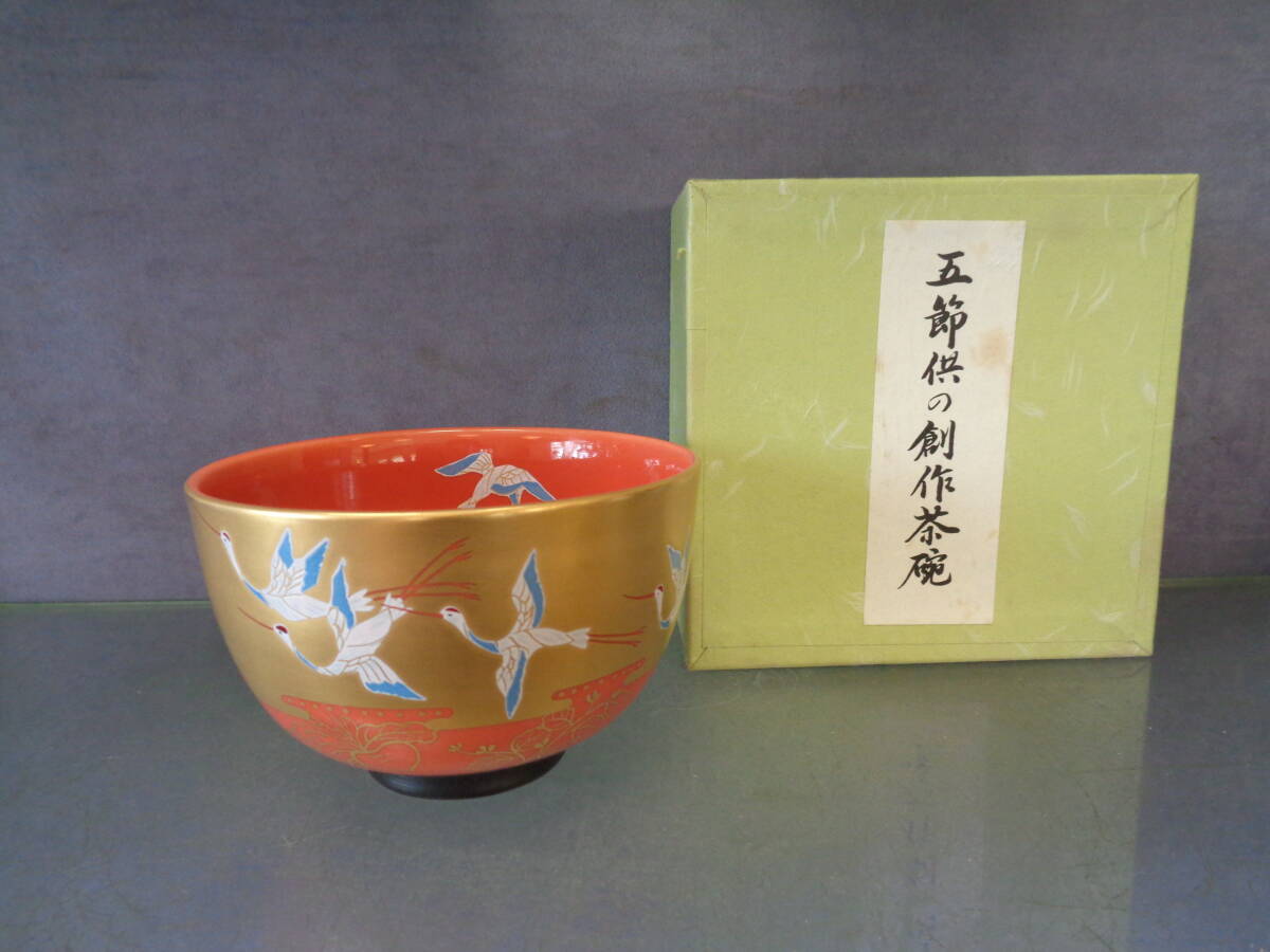 > お茶道具 抹茶茶碗 井泉作 創作茶碗 五節句茶碗 お正月 華やかさが魅力です。未使用同然