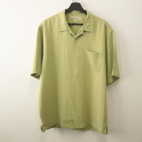 - r136 2000年代製 トミーバハマ 半袖アロハシャツ■00s 表記Mサイズ グリーン オープンカラー 開襟 シルク アメカジ ストリート 古着 激安